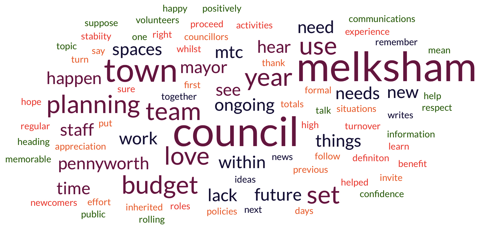 But first - a "Thank You" and appreciation of the mayor and the team of councillors and staff at Melksham Town Council for all the time and effort they have put in during 2025. As with any new council in May, they have had to work with ongoing policies and inherited situations from the previous council, and within the budget totals set by that council too. A high turnover of staff in 2025 hasn't helped as by definition newcomers take time to learn into their roles and/or into Melksham, whilst ongoing regular activities proceed. So I would hope to see or hear from the same team right through 2026 - we sure will benefit from some stability and experience.